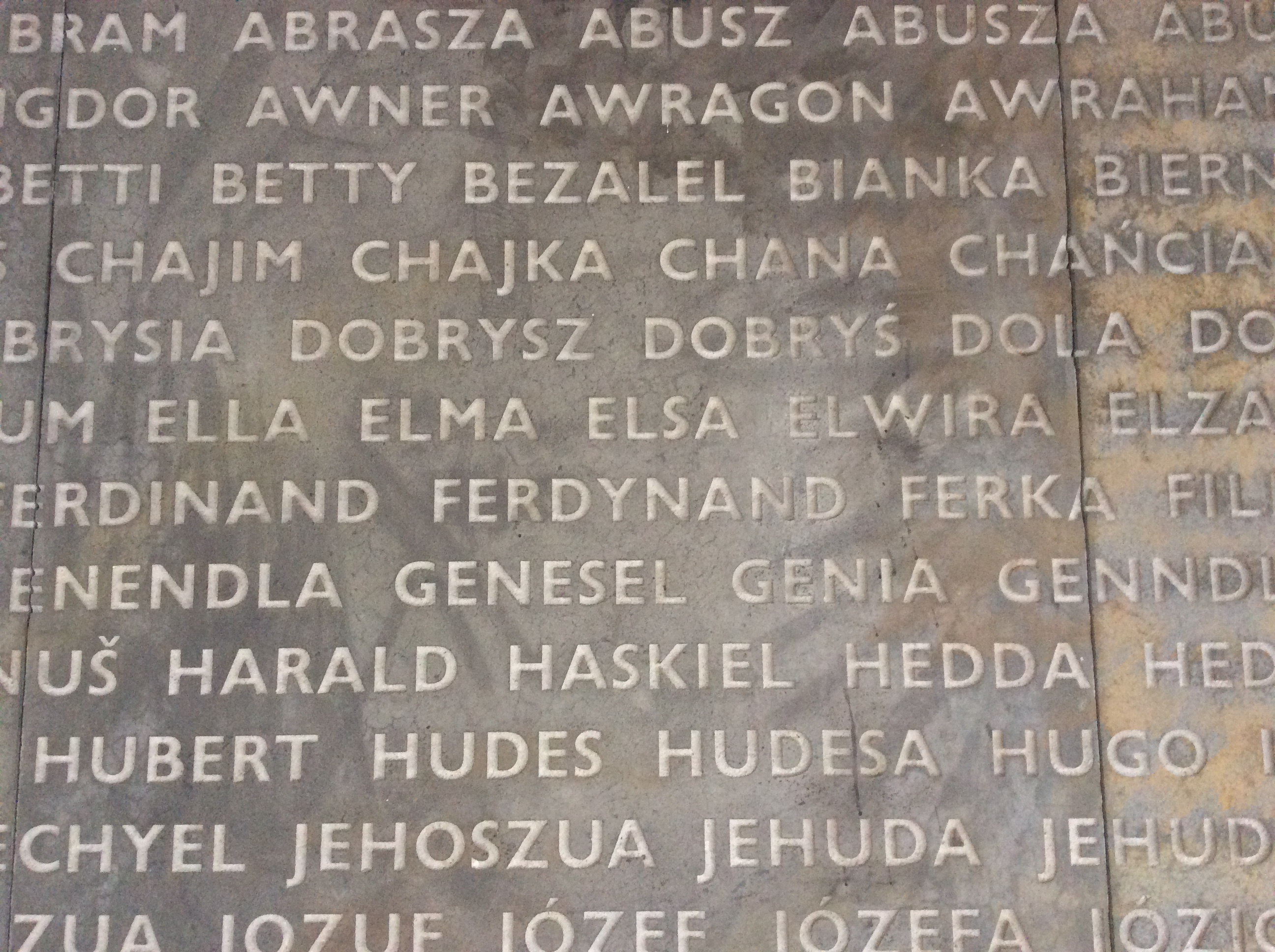 2016-09-27-15-58-00 Published Oktober 2, 2016 at 2592 × 1936 in In Belzec Eine Tafel mit Vornamen erinnert an die Ermordeten.
