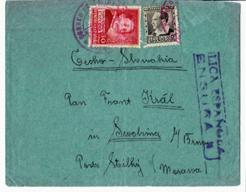 Neben dem für die Geschichte der Internationalen Brigaden durchaus bedeutenden Absender zeichnet den Brief das seltene Briefpapier aus, das propagandistische Darstellungen der republikanischen Milizionäre zeigt. Eigentlich als Faltumschlag produziert, hat Martin Führer den Bogen beidseitig komplett beschrieben und anschließend in einem neutralen Umschlag an einen Freund nach Swolsina bei Brünn versandt.